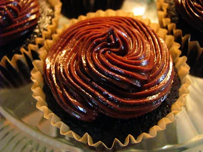 I needed to find a dairy-free and egg free cupcake recipe: and altered one to fit my (lofty) chocolate cake standards. I'd bet that you would never know that it was also vegan! I upped the cocoa powder to flour ratio and added powdered espresso to the water, along with a heavy pinch of aleppo pepper! When I was at the Spice House last week, replenishing my stock, I told the guy I loved that aleppo. He asked if I ever tried it with Chocolate. Chocolate?! Why I didn't think of this, I don't know. This suggestion made me want to run home, make some truffles, and sprinkle them liberally with aleppo. While that is on my to-do list, I settled for slipping a bit into the cupcakes.